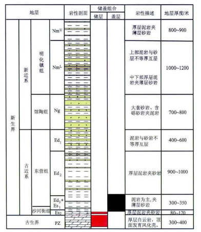 3.1 埋藏史及热史分析由于本区以新生界古近系烃源岩为主力生烃层系,且潜山主要形成期为新生界沉积时期,因而仅针对新生界的埋藏史及热史进行了模拟分析。
