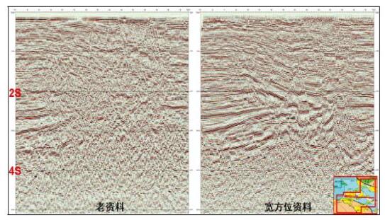 | 图 6 宽方位角与窄方位角采集地震剖面 |