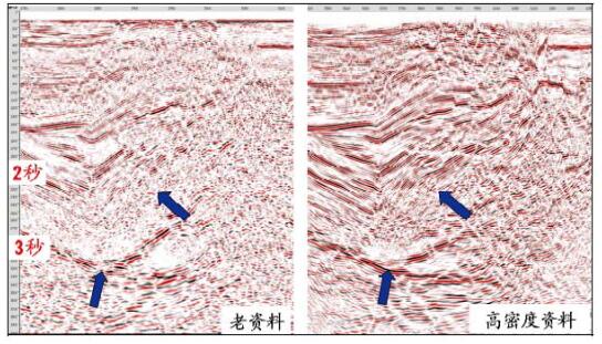 | 图 7 高密度与常规密度采集地震剖面 |
