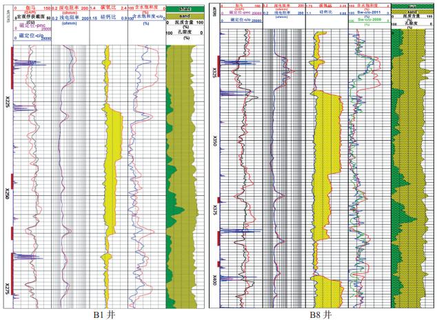 | 图 6 B1井和B8井6和7油组RPM测井解释成果图 |