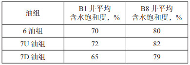 | 表 1 B1井和B8井6和7油组含水饱和度对比 |