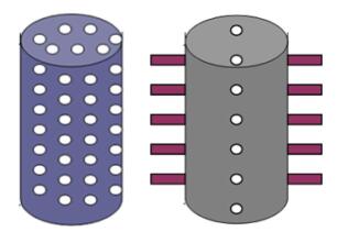 | 图 2 裸眼支撑架(左)和套管射孔支撑架(右)示意图 |