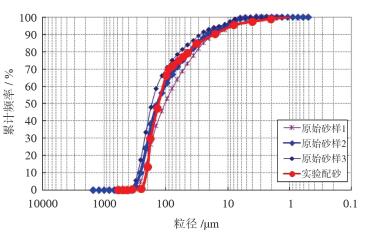 | 图 6 实验配砂粒度曲线与实际储层砂粒度曲线对比 |