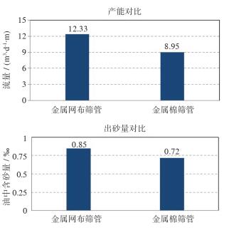 | 图 8 2种筛管砾石充填实验产能和出砂量对比 |