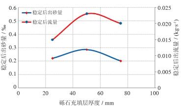 | 图 9 不同砾石充填层厚度下流量与出砂量的关系 |
