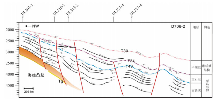 | 图 3 西湖凹陷二维地震测线D706-2层序地层学解释 |