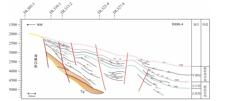 | 图 4 西湖凹陷二维地震测线D696-4层序地层学解释 |