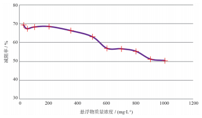 | 图 4 悬浮物质量浓度对TM-02减阻性能影响 Fig. 4 (减阻剂质量分数0.08%) |