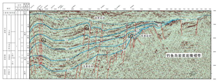 确定T20有最清晰的地震资料,龙井运动在西湖凹陷形成最广泛的挤压褶皱,见图 2中②,③,而褶皱顶部剥蚀所形成的角度不整合面、以及盆地边缘的削截特征处处可见。