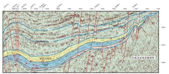| 图 4 GH-1测线花港组下段体系域分布 |