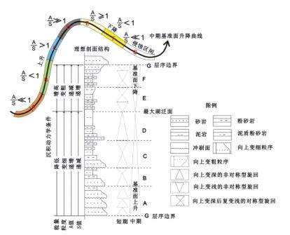 我们认为:粗碎屑体内部的各种向上变细,或向上变粗层序与水深变化并没有必然关系。粗碎屑体所代表的高能活动背景本身蕴含着微相在上游、下游方向,以及侧向活动的多样性,因此,即便是河道演化的正向序列并不代表基准面上升半旋回;纵向砂坝的浅滩化也不意味着基准面下降半旋回。