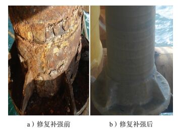 | 图 4 海管立管腐蚀缺陷修复补强前后对比 |