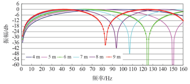 | 图 4 不同沉放深度的电缆鬼波频率特性图 |