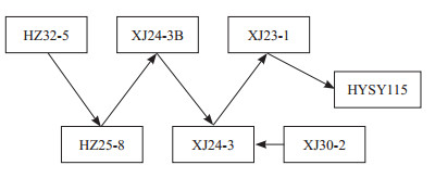 1 研究方法 1.1 南海某油田群简介南海某油田群由5座已建平台H Z 2 5 - 8、XJ24-3B、XJ24-3、XJ30-2、XJ23-1,1座拟建平台HZ32-5以及处理终端海洋石油115 FPSO(HYSY115 FPSO)组成,6个平台所产物流通过6条海底管道组成的管网越站直接输送至HYSY115 FPSO(图 1)。根据各平台配产温度,中间所有平台的生产水温度超过80 ℃甚至更高,直接排海造成热量浪费。整个油田群中,HZ25-8至XJ24-3B海管(长18.3 km)和XJ24-3至XJ23-1海管(长20.7 km)最长,沿程摩阻最大。通过提高流体通过此两段海管的温度可以降低沿程摩阻,达到节能的目的。