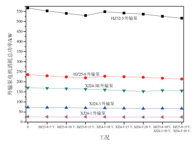 | 图 2 不同工况下原油外输泵电机总消耗功率变化 |