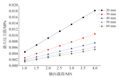 | 图 12 不同壁厚弦杆的最大应力随不同轴向载荷变化图 |