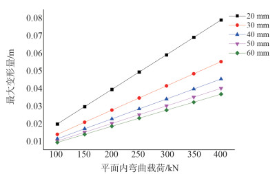 | 图 15 不同壁厚的弦杆的最大变形量随不同内弯曲载荷变化图 |