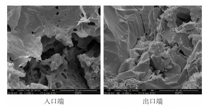 | 图 7 缔合型压裂液动态伤害后岩心前、后端微观结构 |