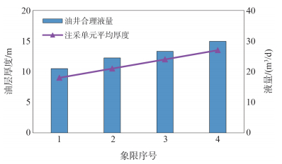 研究结果表明,油井最优液量与其所在地层的有效厚度成正比例关系。地层有效厚度越大,剩余油潜力越大,油井产量越高,液量相同时对应的含水率越低。为了实现注入水的均衡驱替,应对对应油井实施提液。