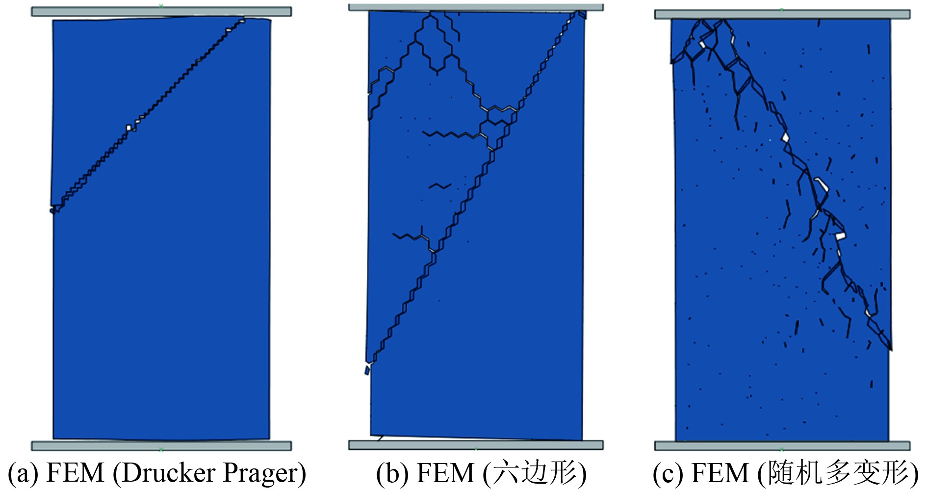图 7 基于FEM和FDEM的模型冰失效特征 Fig. 7 Failure model of uniaxial compression for columnar model ice based on FEM and FDEM |