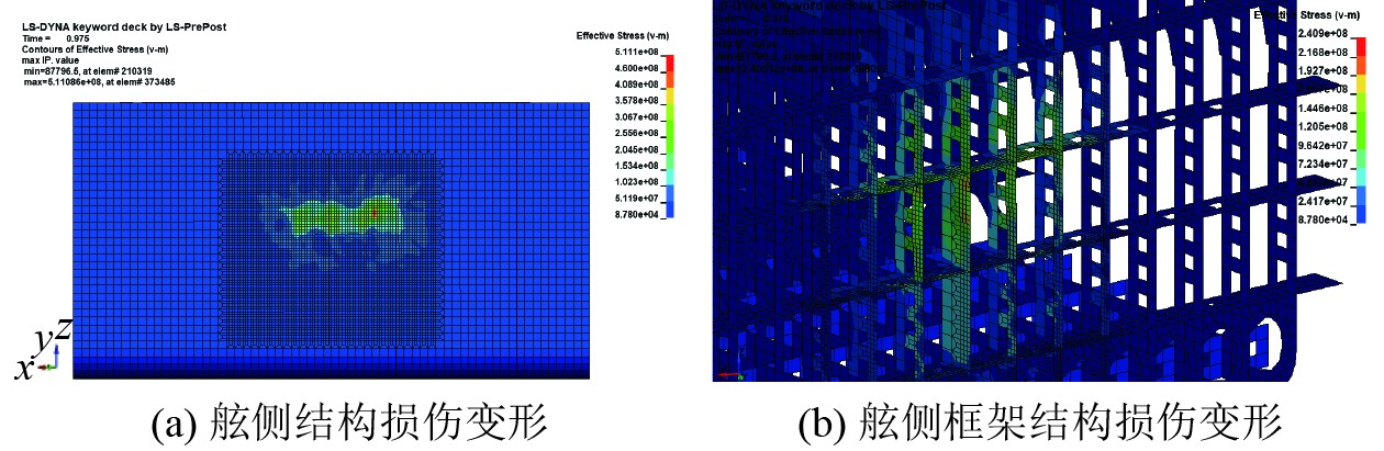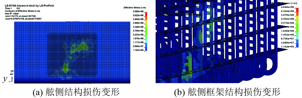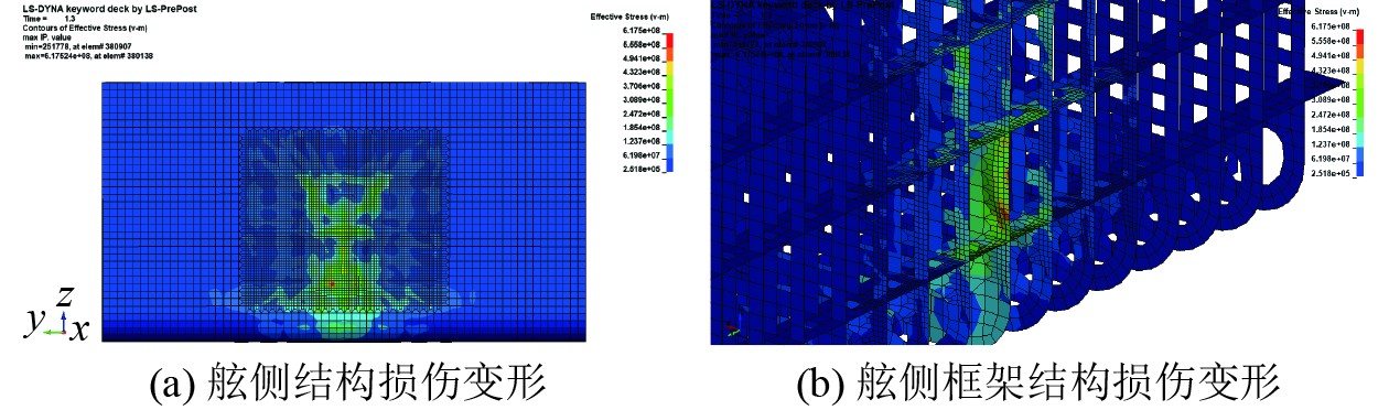 图 3 碰撞模式1(90°撞击)应力云图 Fig. 3 Crash mode 1 (90° impact) stress map |