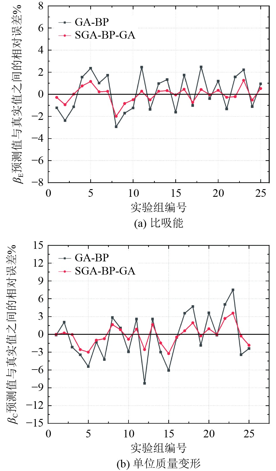 2) SGA-BP-GA算法展现了较高的预测精度,能够有效地处理复杂的预测任务。研究结果表明,βE的预测误差在−2%~2%,最大误差仅为−1.98%;同时,βC的预测误差在−3.3%~3.6%,最大误差为3.58%,显示出该模型的稳定性和可靠性。