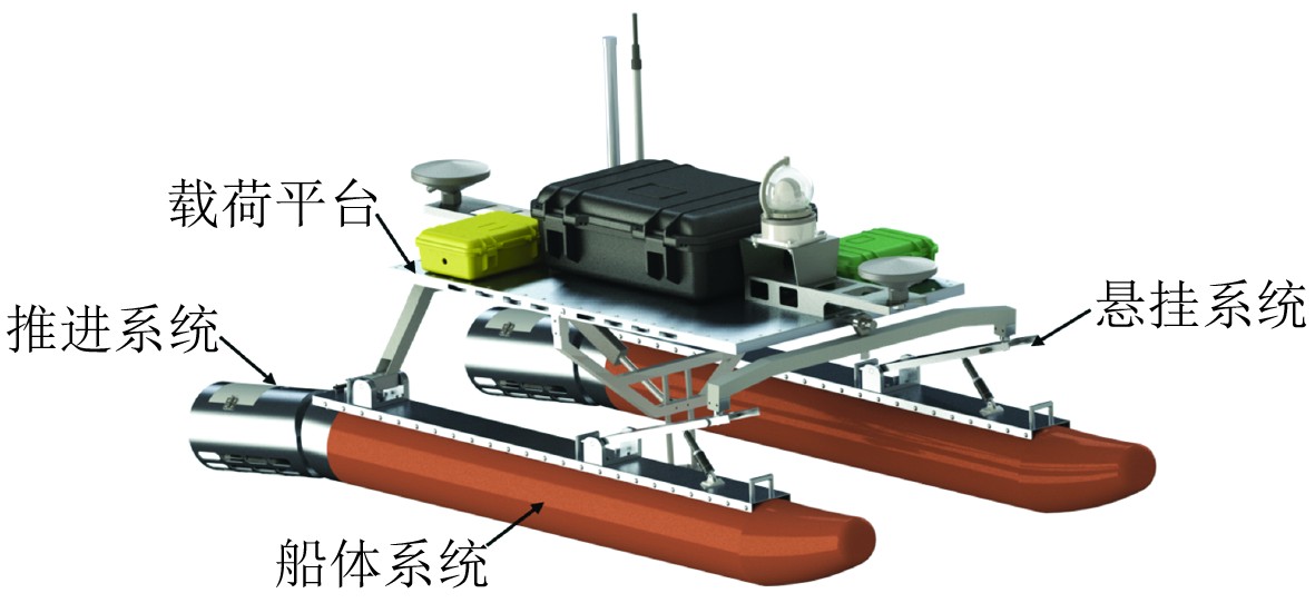 图 1 波浪适应双体船结构图 Fig. 1 Structural diagram of wave adapted catamaran |