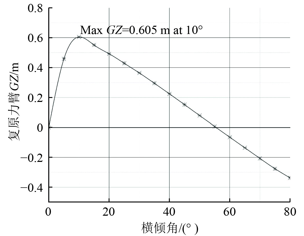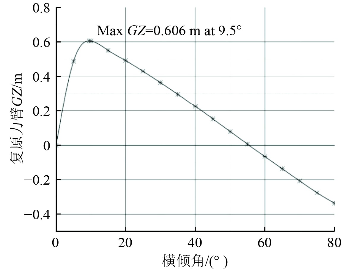 图 8 静稳性力臂曲线 Fig. 8 Curve of static stability lever arm |