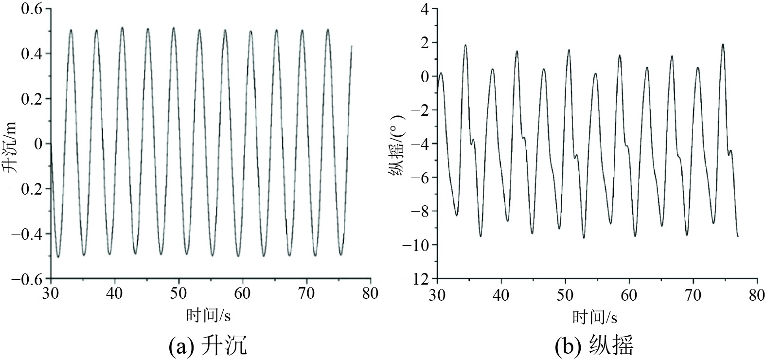 图 14 无人船升沉、纵摇曲线 Fig. 14 Unmanned ship heave and pitch curves |