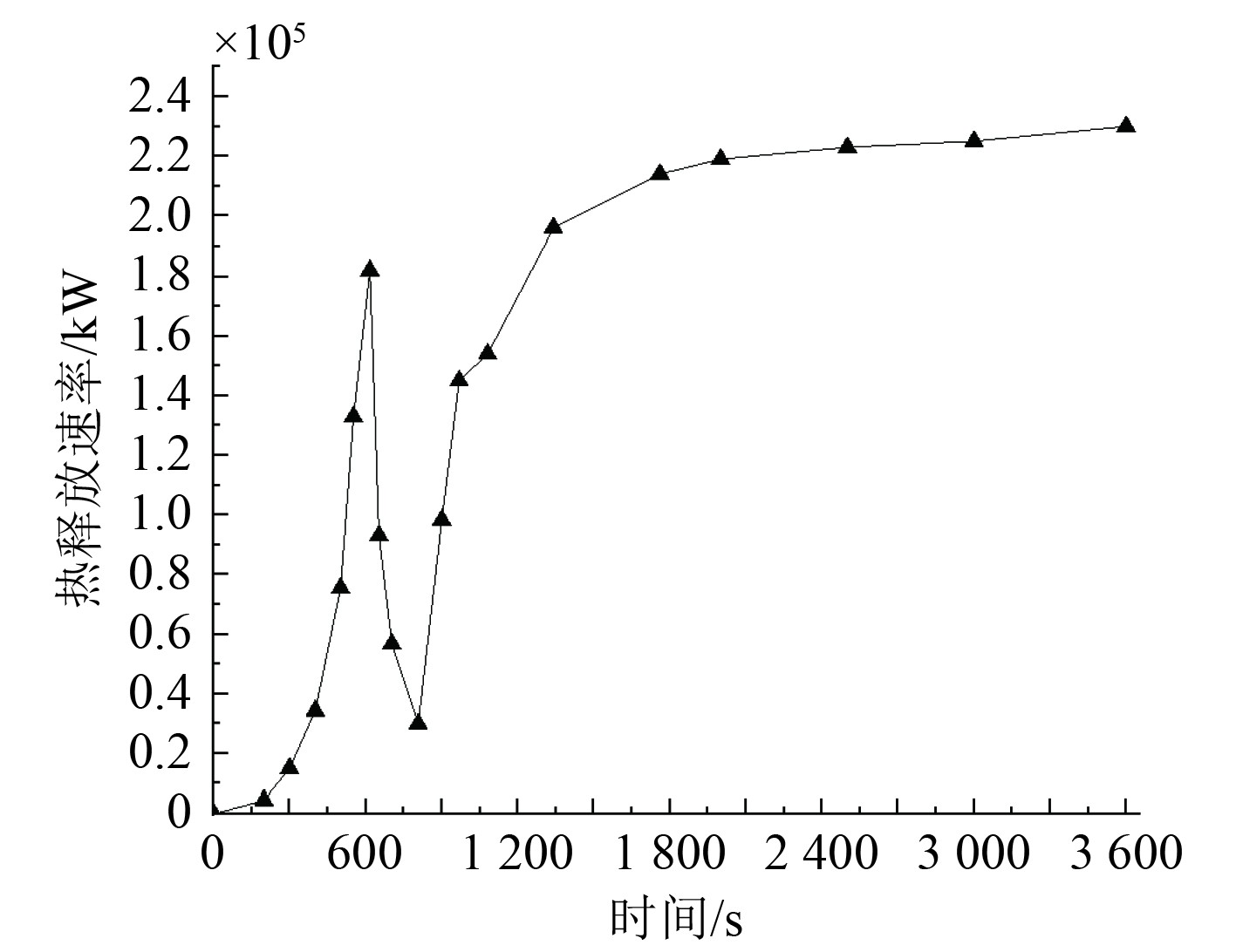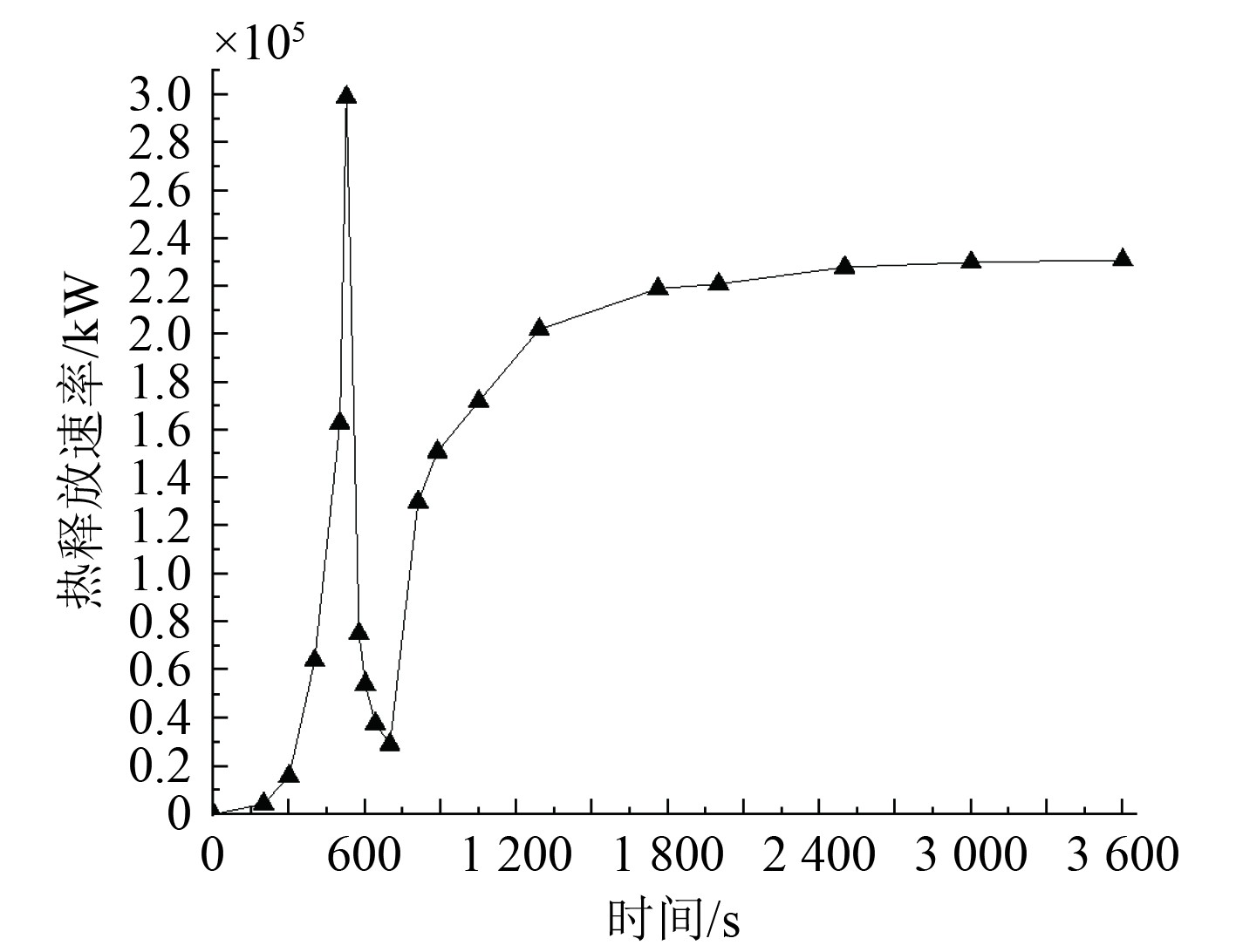 图 7 角隅火灾热释放速率变化 Fig. 7 Heat release rate variation in corner fire |