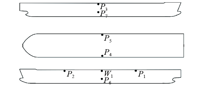 1.5 监测点布置方案参考《钢制海船入级规范》的相关要求,建立如图5所示的7个长基线传感器监测点,以更好地捕捉船舶的整体形变特征。