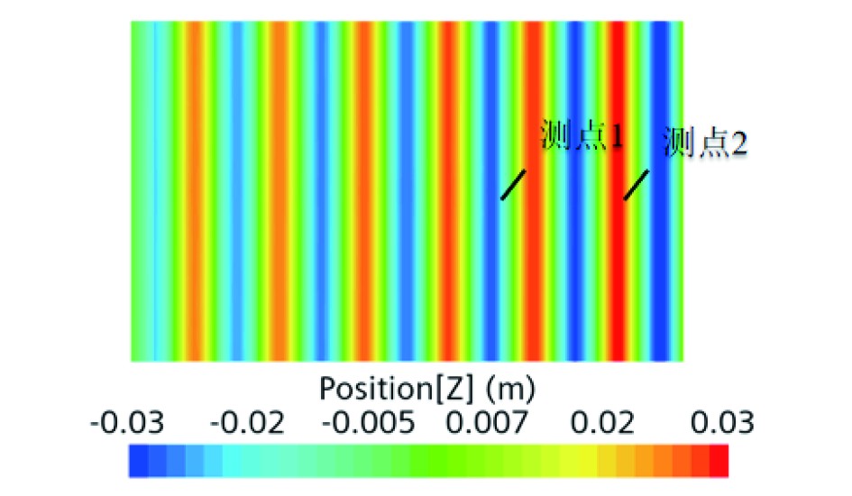 为了避免波浪到达计算域出口时产生反射波,对数值模拟产生干扰,因此在压力出口处设置了消波区域,用于减小出口所产生的反射波,消波区的长度取波长的1~2倍。