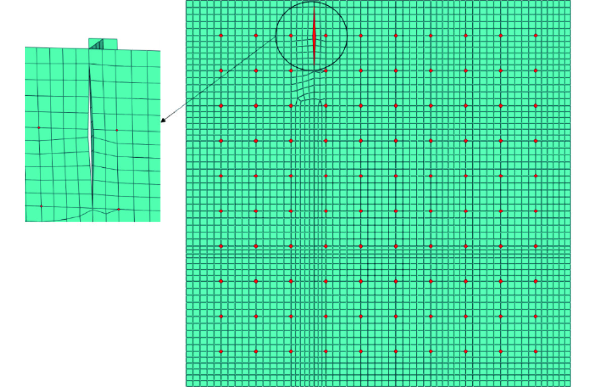图 2 带裂纹的船体板架有限元仿真模型 Fig. 2 Finite element model of hull plate frame with a crack |