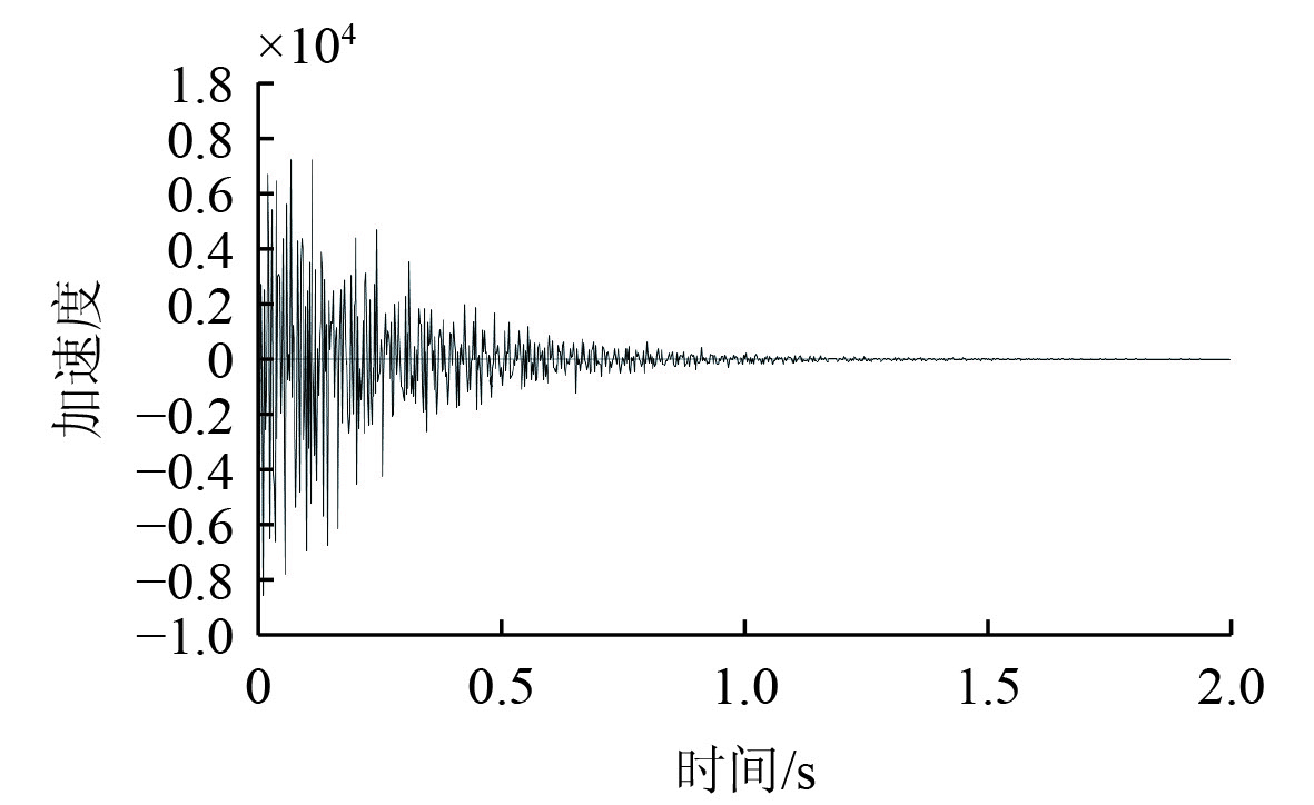 图 3 瞬时激励下健康船体板架中心位置垂向加速度 Fig. 3 The center positions vertical acceleration of a healthy hull plate frame under instantaneous excitation |