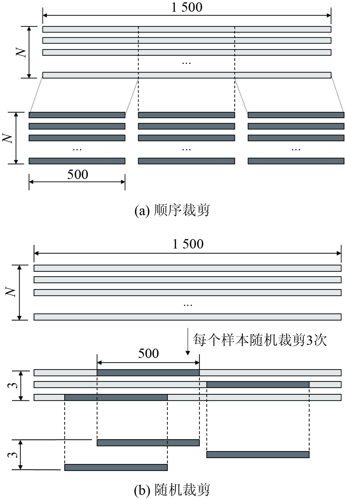 本文主要采用顺序裁剪和随机裁剪2种方法,其过程如图4所示。顺序裁剪如图4(a)所示,直接将后3 s的长度
