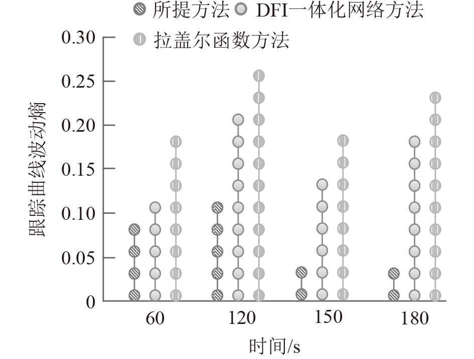 可以看出,相比于DFI一体化网络方法和拉盖尔函数方法,所提方法的跟踪曲线波动熵明显更低,且均在0.10以下,意味着所提方法受外界干扰因素的影响更小,能够更为稳健地持续跟踪目标,整体的跟踪性能更优。这是因为所提方法通过广义协方差交集准则综合考虑各子带信息,充分利用各子带信息的优势,弥补单个子带信息的不足,得到一个更为准确、可靠的位置动态跟踪结果。这种融合方式增强了机器人对各种干扰因素的抵抗能力,使得跟踪曲线不会因个别子带受干扰而出现大幅波动,始终保持在相对稳定的范围内,进而有效控制了跟踪曲线波动熵,使其维持在较低水平。