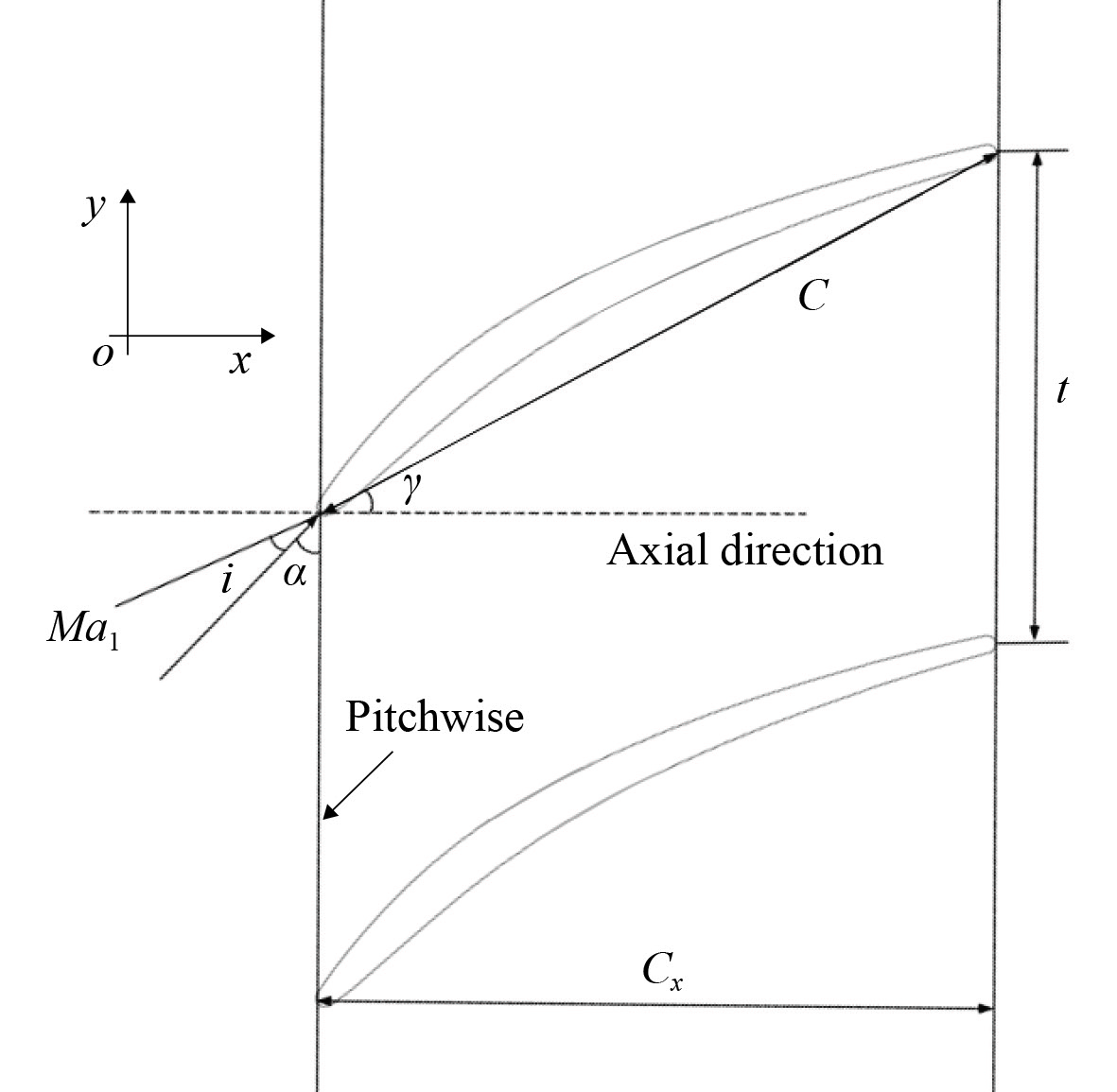 图 1 叶栅模型示意图 Fig. 1 Schematic diagram of a cascade model |