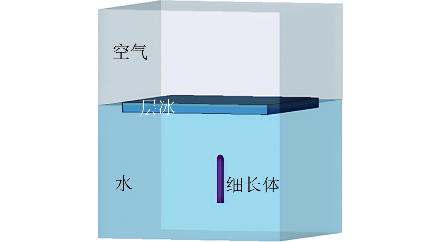综上所述,目前的研究多集中于细长体的水下运动响应,而在高速细长体水下冲击层冰的数值模拟方面研究较为薄弱。尤其是在水下发射穿冰过程中的空泡演化规律及层冰的动态响应特性方面,相关研究尚显不足。因此,本文基于结构化任意拉格朗日欧拉(Structure-Arbitrary Lagrangian Eulerian, S-ALE)方法构建了高速细长体冰下发射模型。通过系统的数值研究,模拟了层冰在高应变率下的力学性能和裂纹扩展模式,探讨了冰、水、结构三相介质的耦合作用机制,分析了细长体的运动特性及有冰和无冰状态下空泡演化特征。此研究可为潜器安全发射、海洋工程小型结构的抗冰优化等提供一定的参考。
