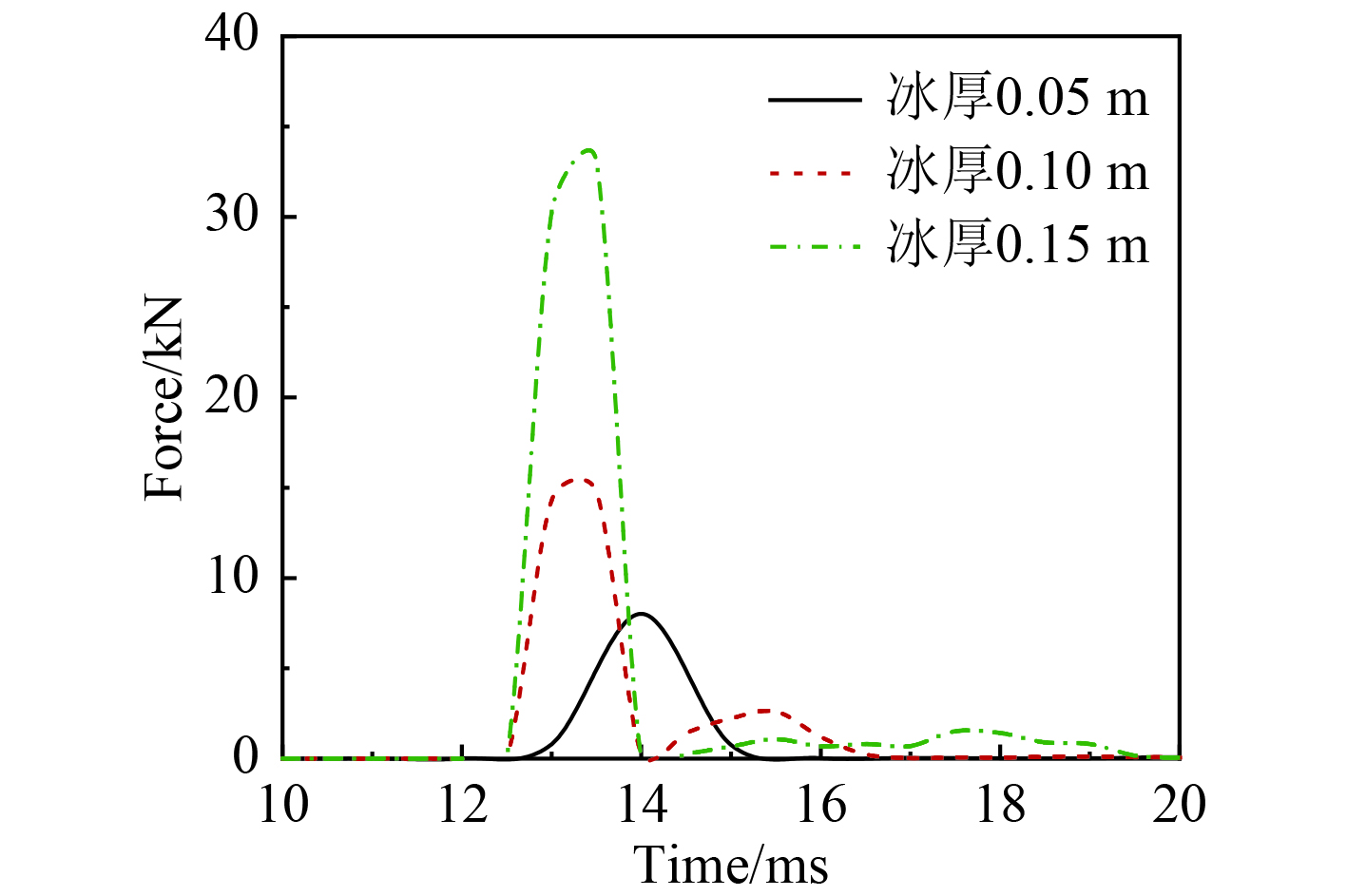 图 14 不同层冰厚度下冰载荷力值对比 Fig. 14 Comparison of ice load force values under different level ice thicknesses |