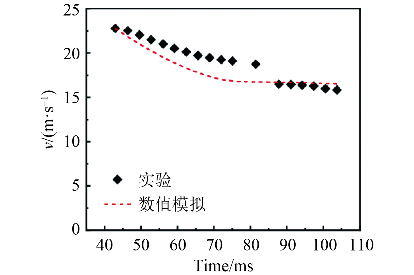 图 6 弹丸水下发射实验和数值模拟的速度对比 Fig. 6 Comparison of velocity between experiment and numerical simulation |