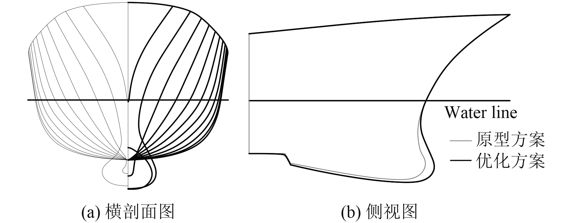 图 6 优化前后球艏纵切波形对比图 Fig. 6 Comparison of the longitudinal waveform of the initial and the optimal bulbous bow |