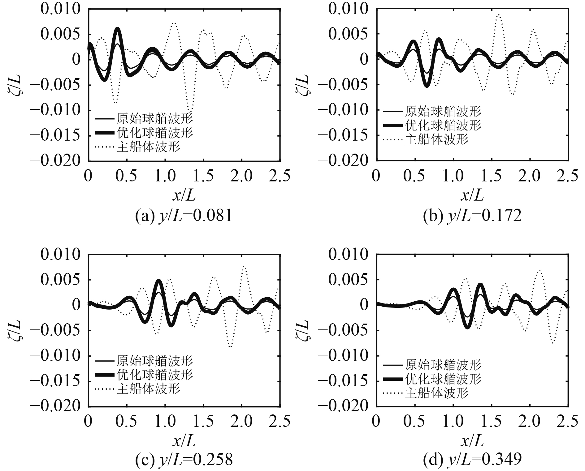 2)基于线性假设的波形分析法可直观地反映球艏波系与主船体波系之间的关系,从而为型线优化提供定性指导。