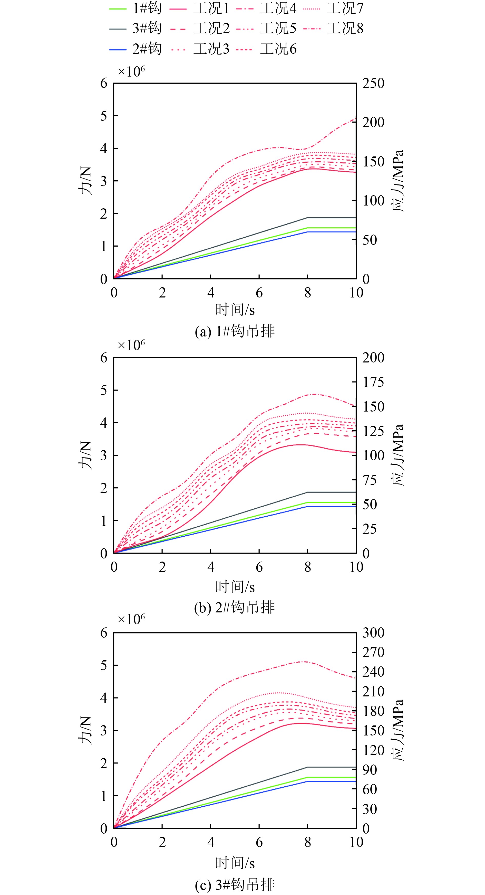 图 4 各吊排施加载荷随时间变化曲线 Fig. 4 Variation curve of applied load with time for each lifting row |