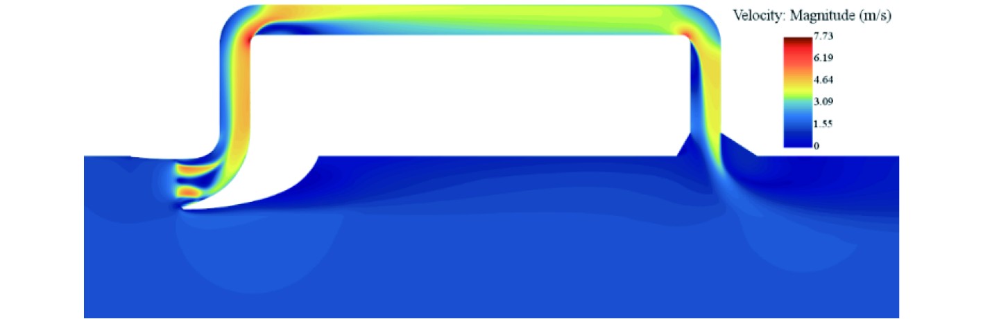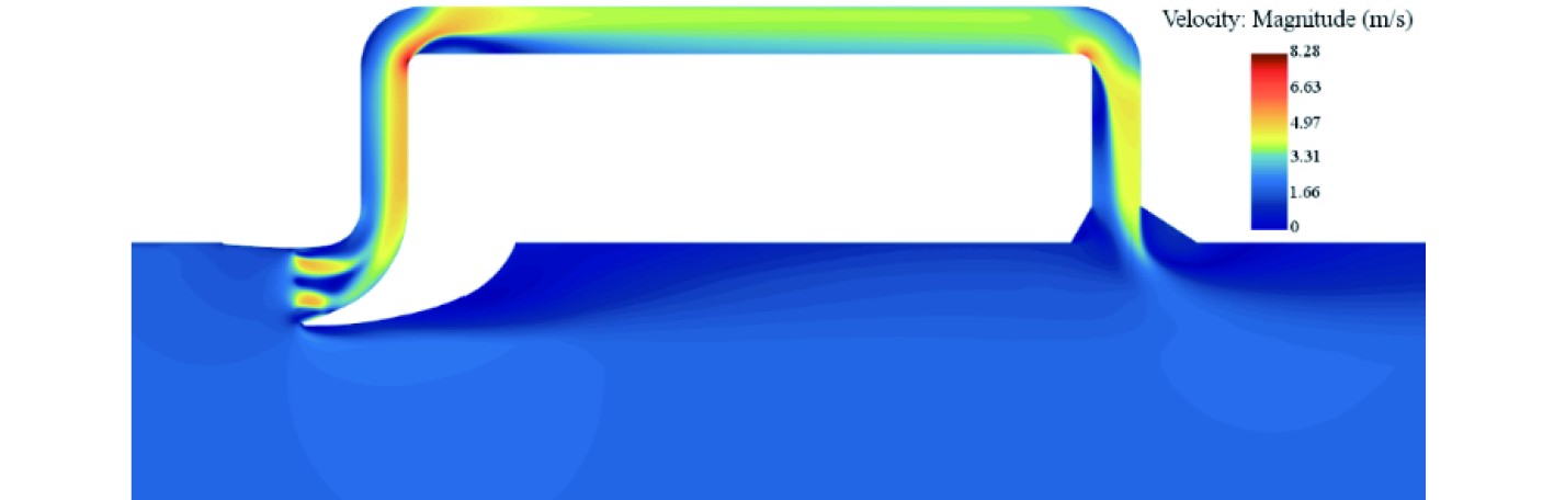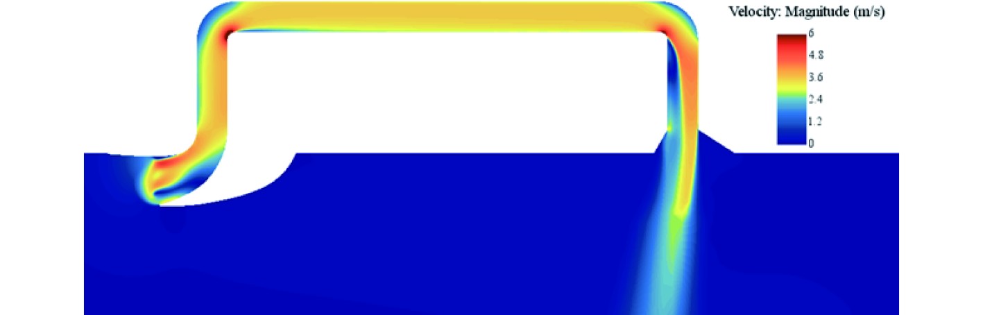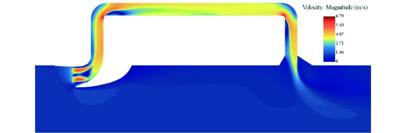 图 12 外流域2 m/s时流场情况 Fig. 12 Flow field at 2 m/s in the outer basin |