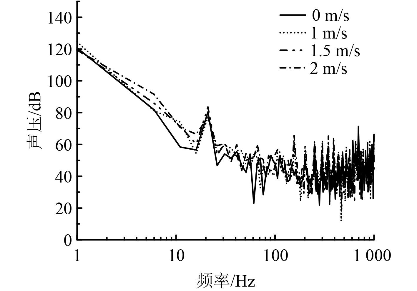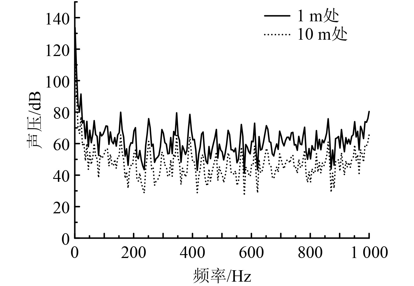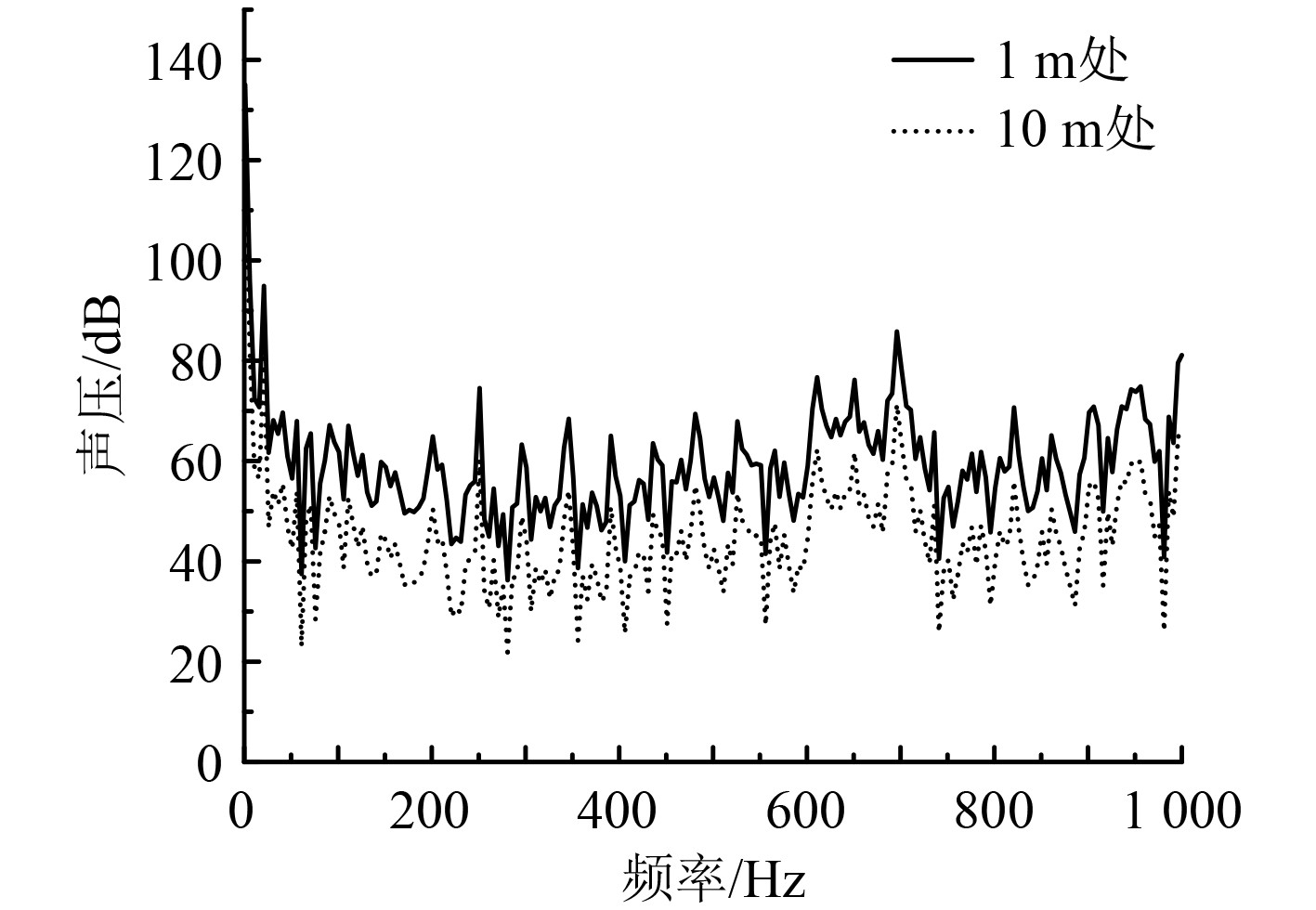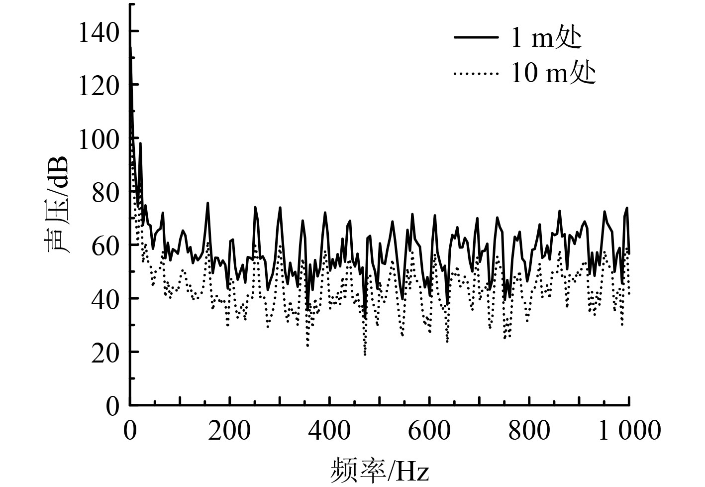 图 16 10 m处声压频谱图 Fig. 16 Spectrum diagram of sound pressure at 10 m |