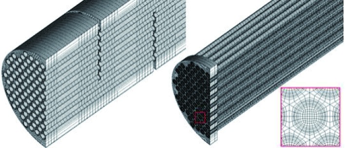 图 2 外壳内径D=400 mm的换热器有限元模型示例 Fig. 2 Example of finite element model of heat exchanger with inner diameter D=400 mmin shell |