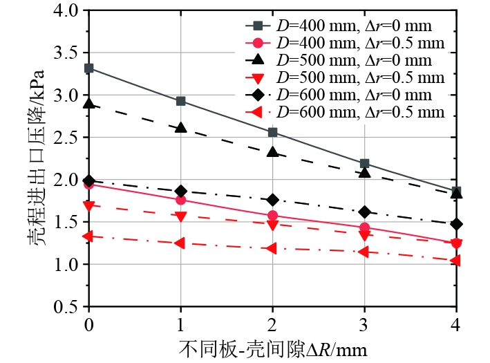 图 6 壳程压差与间隙值ΔR和Δr的关系 Fig. 6 Relationship between shell side pressure difference and clearance values Δ R and Δ r |