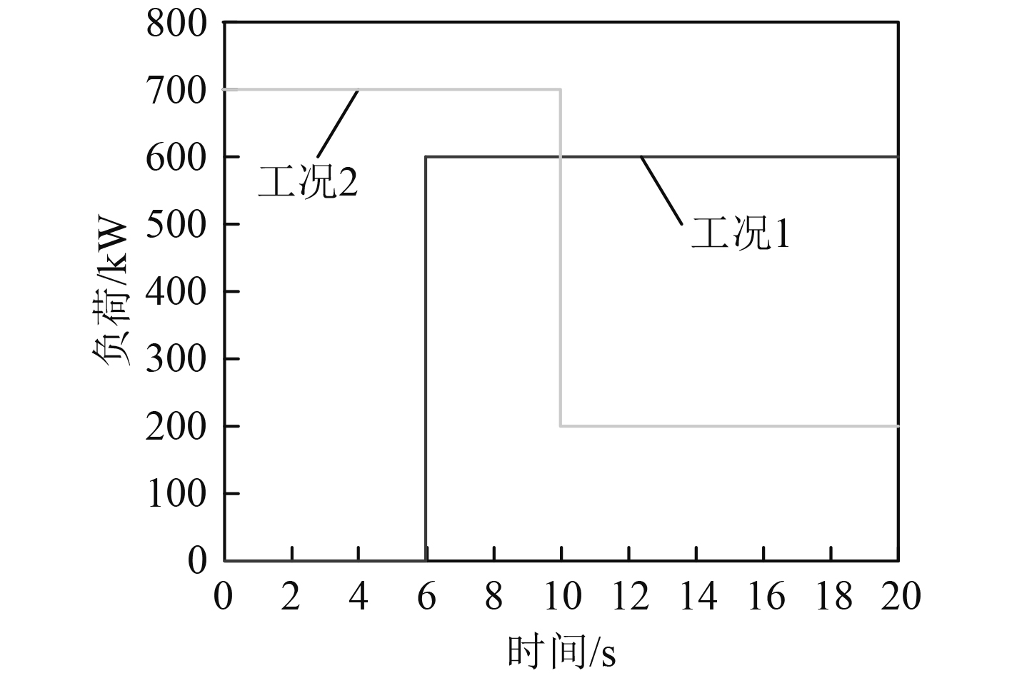 3 实 验 3.1 实验条件以某型船用中速柴油机为例,进行实验。为船舶柴油机动力装置负荷设置2种工况,即一是从0负荷增长到600 kW负荷;二是从700 kW负荷下降到200 kW负荷,如图2所示。