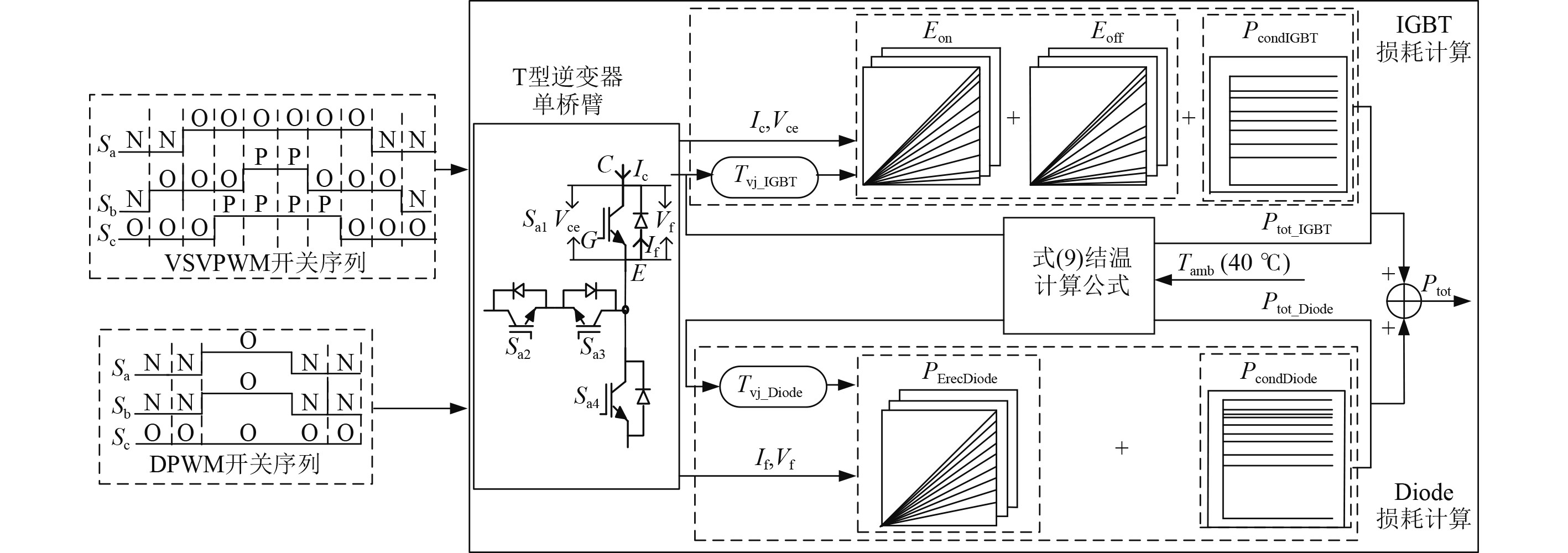考虑到三相对称,仅分析单相损耗,不同调制方法的损耗计算过程如图5所示。由于IGBT器件内部的结温无法直接测量到,因此要根据