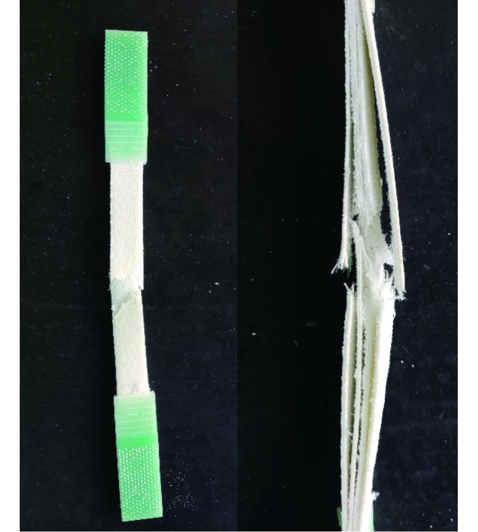 图 3 平纹编织复合材料试件断裂图 Fig. 3 Fracture diagram of plain weave composite specimen |